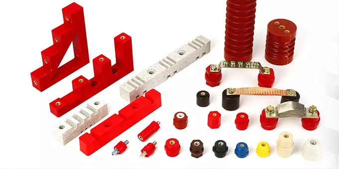 成形材料主要為BMC(Bough Moulding Compound)/ DMC(Dough Moulding Compound)不飽和樹脂。客戶可以根據(jù)自身對絕緣柱的絕緣,機(jī)械及電性能指標(biāo)要求制定使用普通或加強(qiáng)型材料,UL材料。